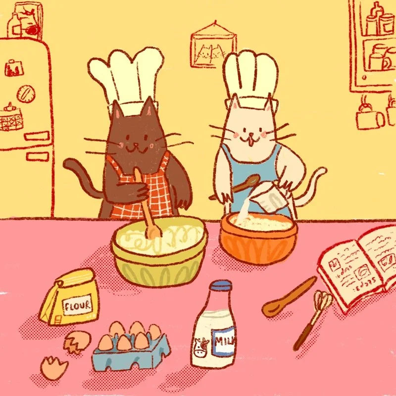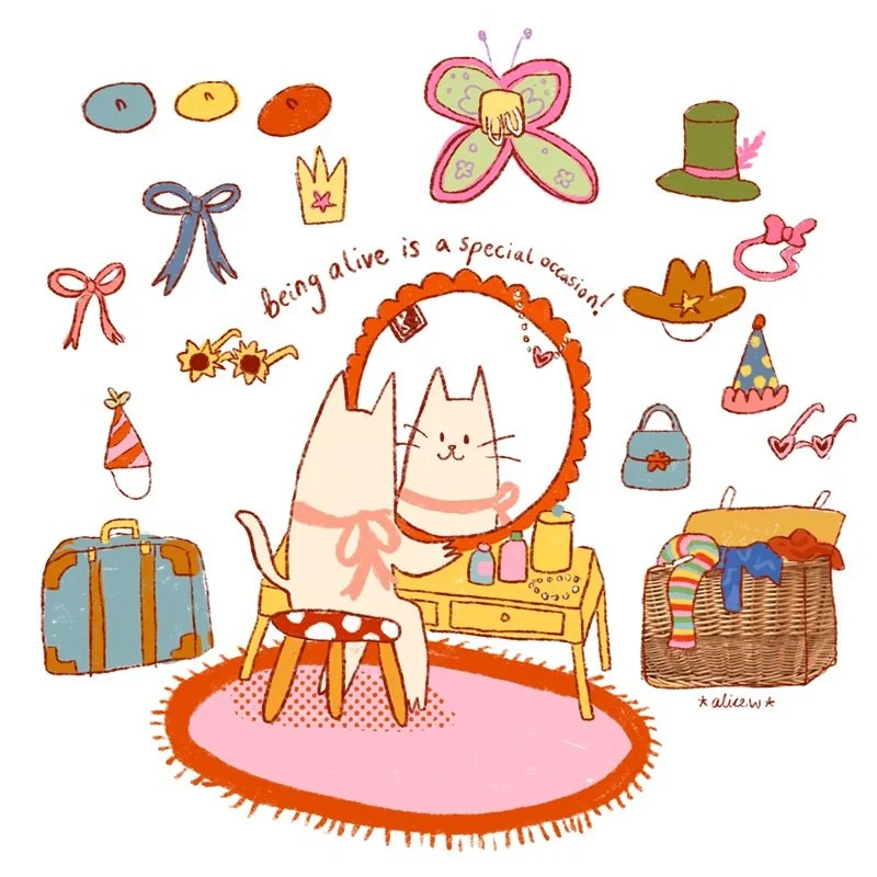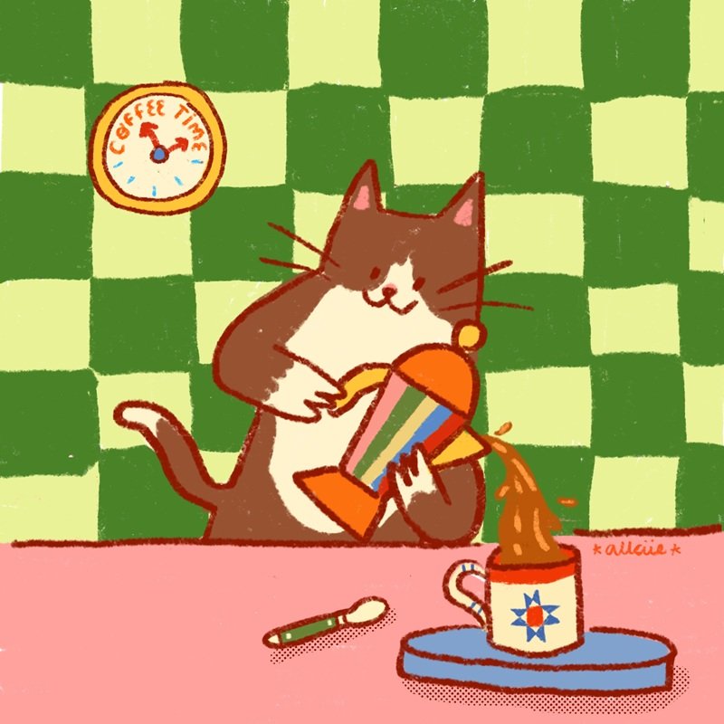 Alice is an illustrator from London who captures cosy scenes depicting cats at play. Her world is warm and bright, wanting to fill her audience with comfort and hope.