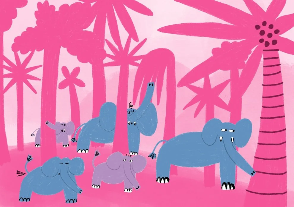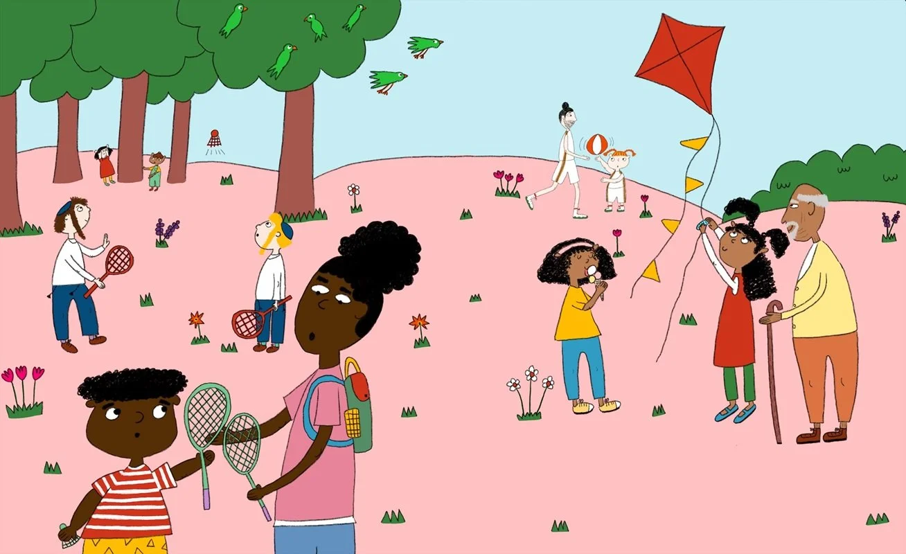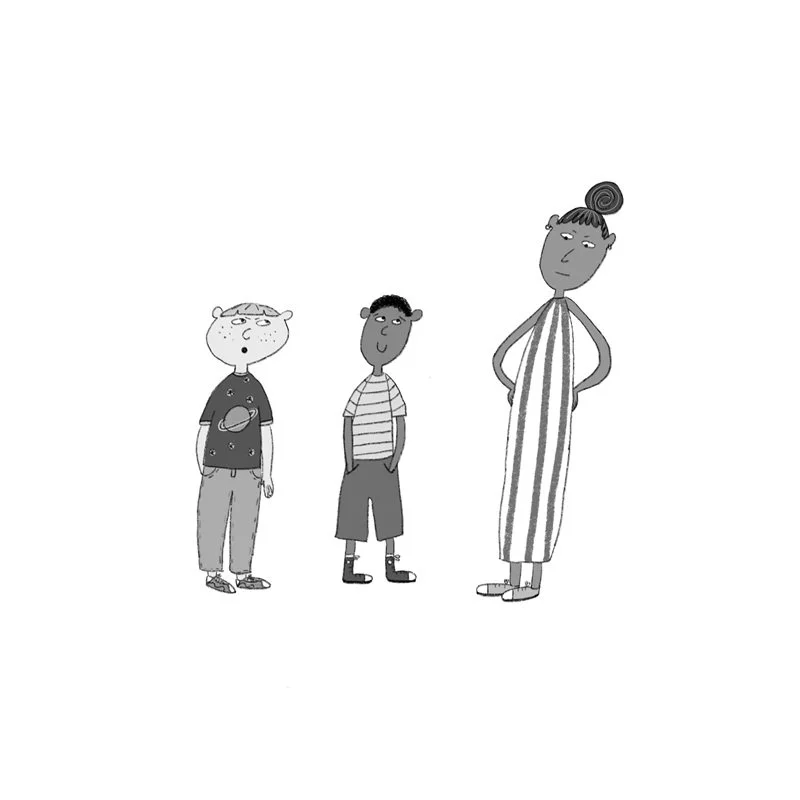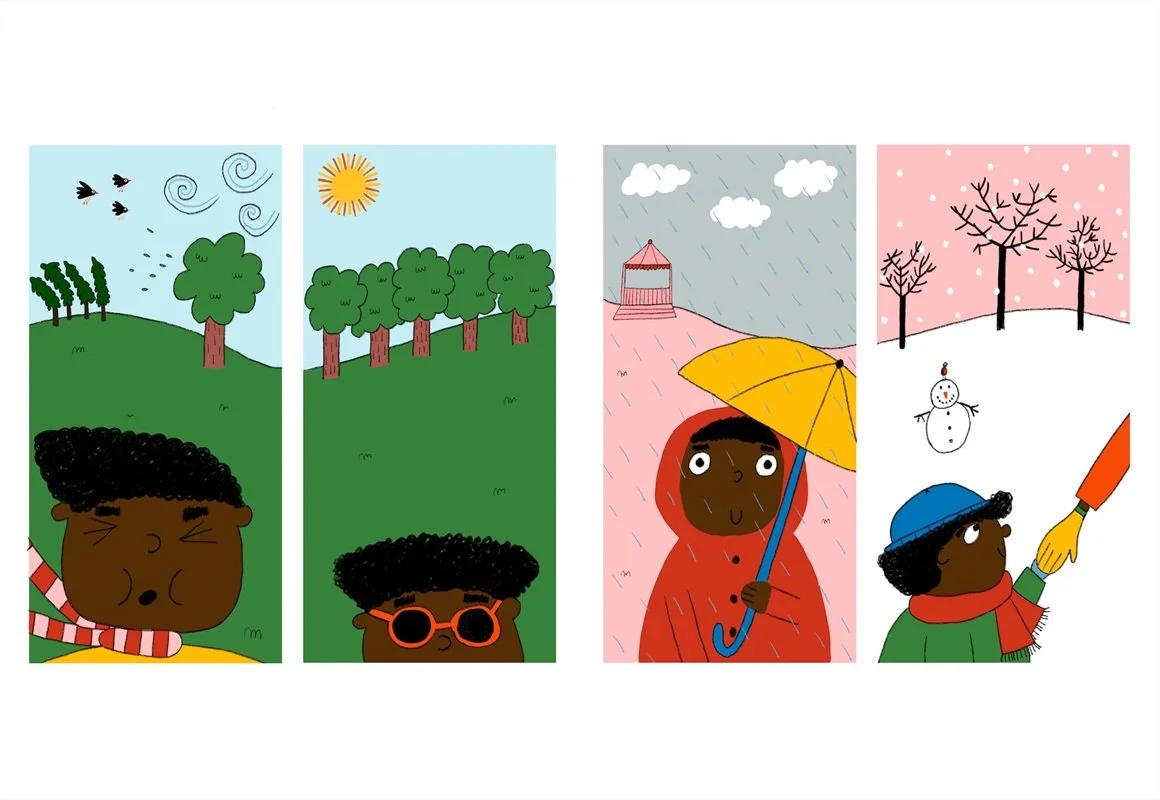 Born in Britain and of Sudanese heritage, she likes to depict characters from different backgrounds in her work as well as humour and archetypes of animals and objects. She loves using bright colours and creating a playful aesthetic.