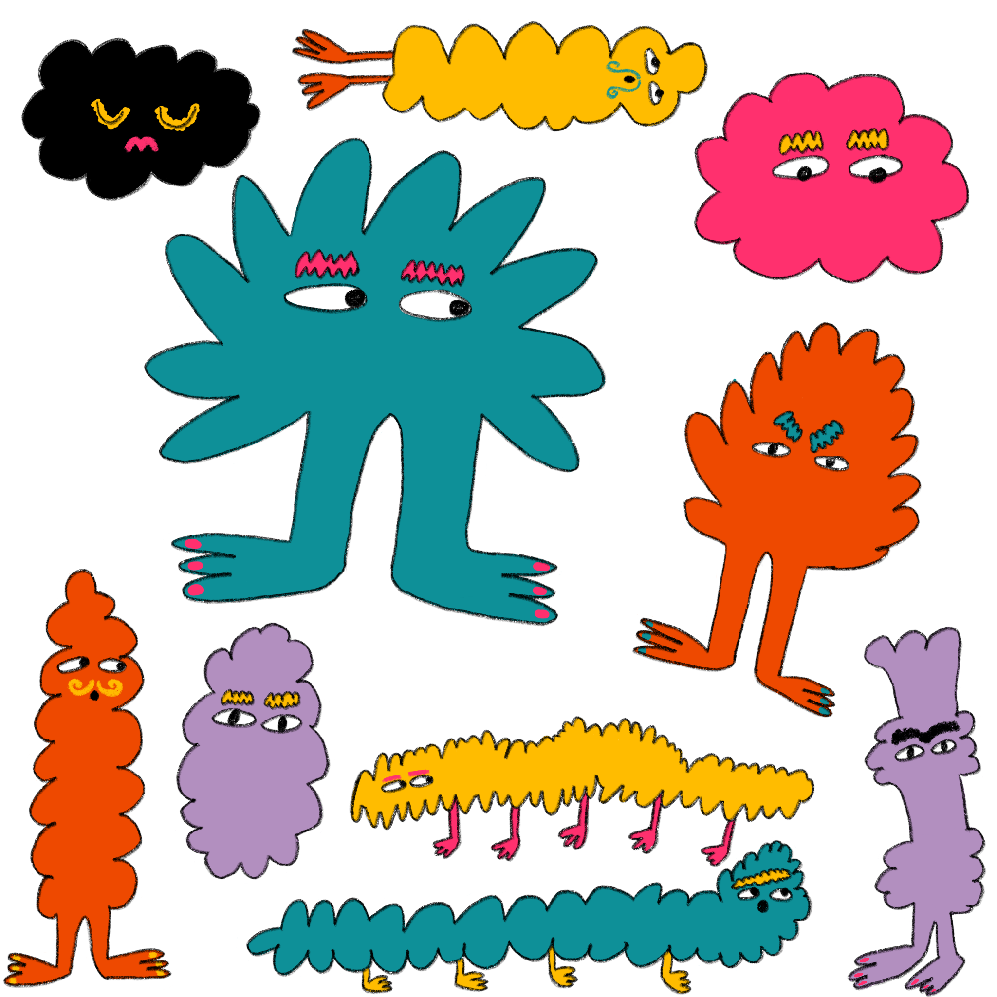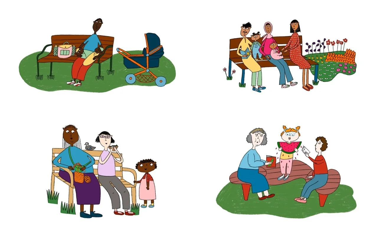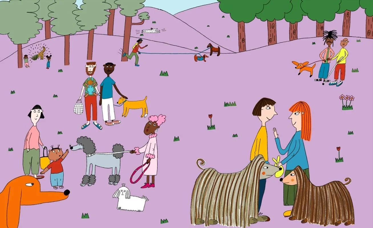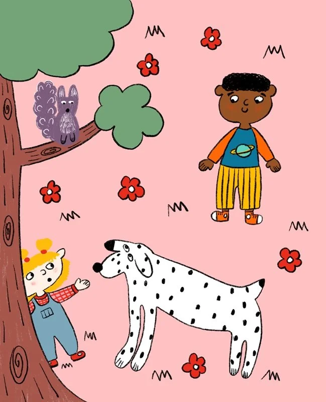 Born in Britain and of Sudanese heritage, she likes to depict characters from different backgrounds in her work as well as humour and archetypes of animals and objects. She loves using bright colours and creating a playful aesthetic.